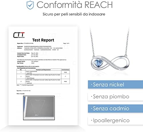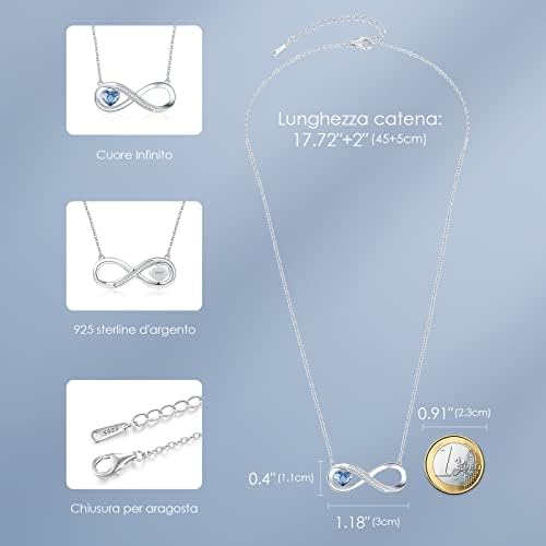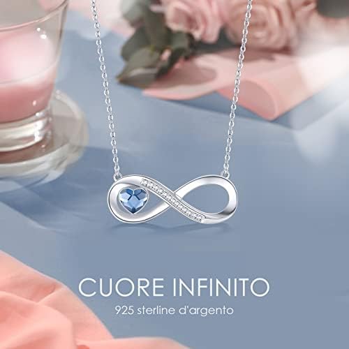 MATERIALI: Realizzato in argento sterling 925 placcato in rodio, senza piombo, senza nichel e ipoallergenico. Il ciondolo a forma di infinito è impreziosito da zirconi. Un cristallo a cuore aggiunge un tocco di colore vivace sul lato sinistro.