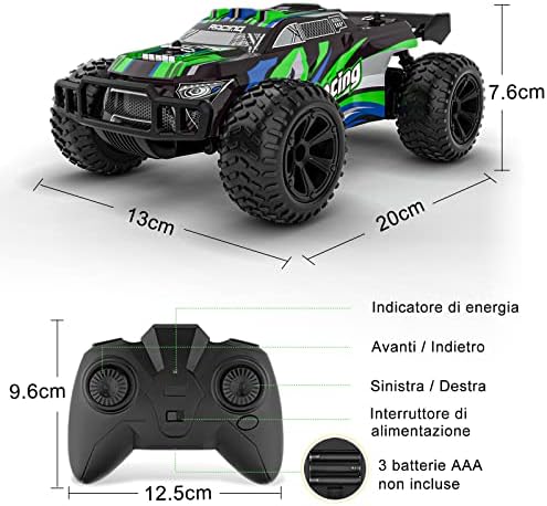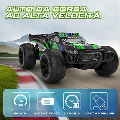 Macchina Telecomandata, Auto Rc Camion Macchinina Radiocomandata Veloce, 2.4GHz 15KM/H Giochi All’aperto Fuoristrada Giocattolo Regalo Natale per Bambini Ragazzo Ragazza 5 6 7 8 9 10 Anni
