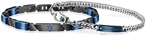 Maserati Bracciale da uomo, Collezione JEWELS, ref. JM221ATZ01, in acciaio, ceramica, PVD grigio e blu, lunghezza 22cm.
