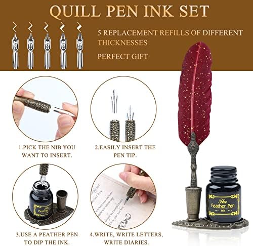 CONFEZIONE CONFEZIONE REGALO: Il set di penna e calamaio è confezionato in scatole regalo di alta qualità, che possono essere utilizzate come regali di compleanno, regali di Natale e regali del Ringraziamento a familiari, amici, colleghi