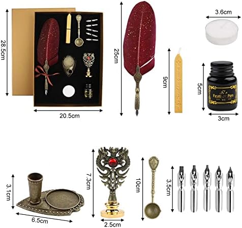 DIMENSIONE: la dimensione della confezione regalo è 28,5 * 20,5 * 4 cm / 11,2 * 8,1 * 1,6 pollici e la lunghezza della penna calligrafica è 26 cm / 10 pollici, questa penna piuma e inchiostro è adatta per principianti, studenti e calligrafi avanzati