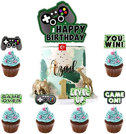 MEZHEN Decorazioni Torta Videogiochi Decorazioni Torte Compleanno Game On Topper Torte Happy Birthday Decorazioni Cupcake Topper Gioco Decorazioni Feste 13 Pezzi