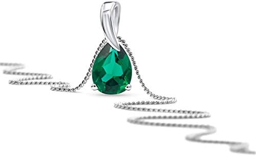 Miore ha diversi design perfetti per mettere in risalto pietre cromatiche. Questa collana ha uno smeraldo verde piriforme artificiale da 0.71 ct. Lo smeraldo è la pietra di maggio.