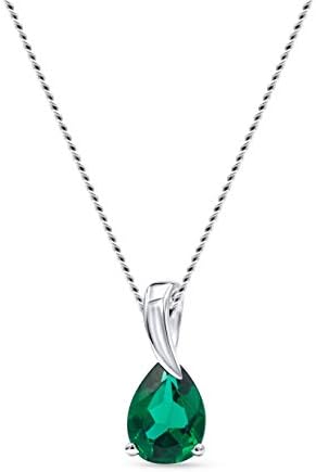 Miore ha diversi design perfetti per mettere in risalto pietre cromatiche. Questa collana ha uno smeraldo verde piriforme artificiale da 0.71 ct. Lo smeraldo è la pietra di maggio.