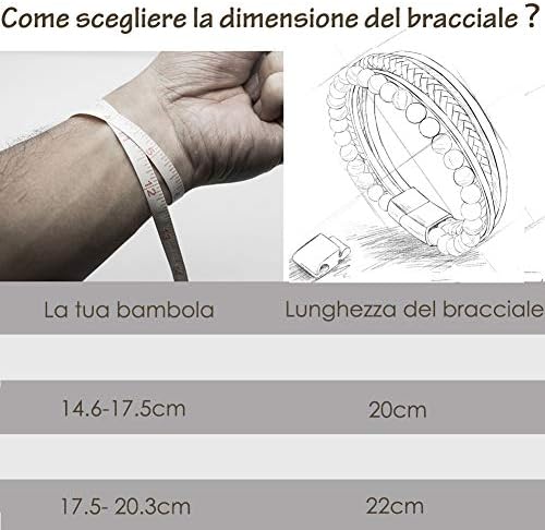 CLASSICA BELLEZZA: usalo a lavoro, alle feste, agli appuntamenti o nei tuoi viaggi, ovunque tu sia, questo braccialetto da uomo con perline nere ed pelle si abbina perfettamente ai tuoi abiti ed al tuo stile. Un elementodi design unico imperdibile e favoloso.