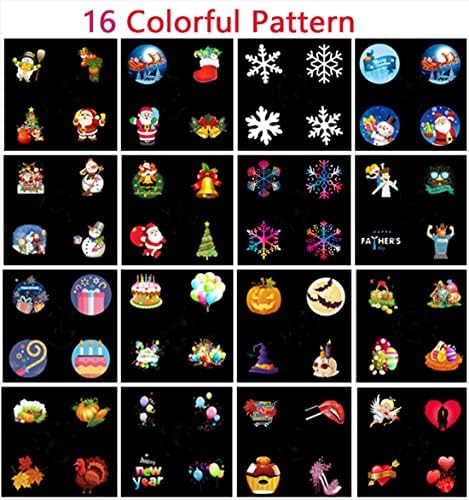 【16 tipi di modelli di diapositive】 Questa lampada di proiezione natalizia dinamica aggiornata è dotata di 16 tipi di modelli squisiti, Natale, Halloween, Pasqua, Carnevale, Ringraziamento, feste di compleanno, Giorno della regina, Capodanno, ecc., tutto l’anno Adatto a festival e feste.