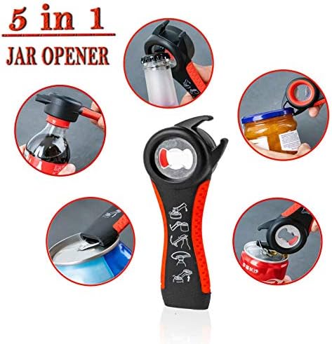 🍺【Salva lo sforzo e facile da usare】Il manico lungo fornisce abbastanza leva, la guarnizione in gomma con strisce antiscivolo assicura la migliore aderenza su superfici scorrevoli, in modo che chiunque possa aprire facilmente qualsiasi vaso o vaso. L’apriscatole multifunzione può aiutare a strappare, tirare, ruotare e girare facilmente i cappucci senza ferire le mani