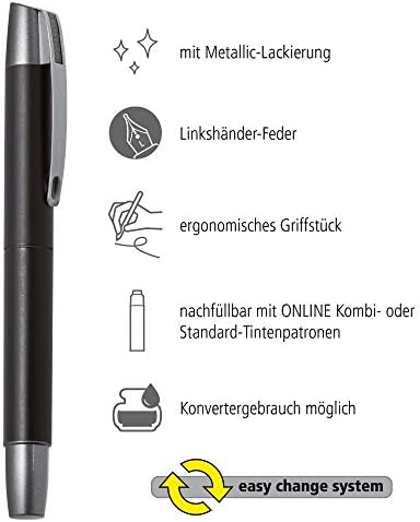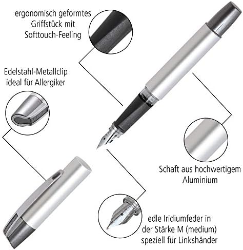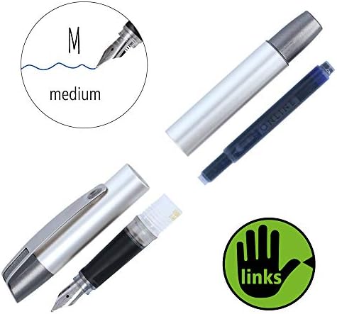 Pennino: il nostro pennino iridio di alta qualità misura M (medio) per mancini fornisce un flusso di inchiostro fluido e costante. Elegante pennino iridico, prodotto in Germania.
