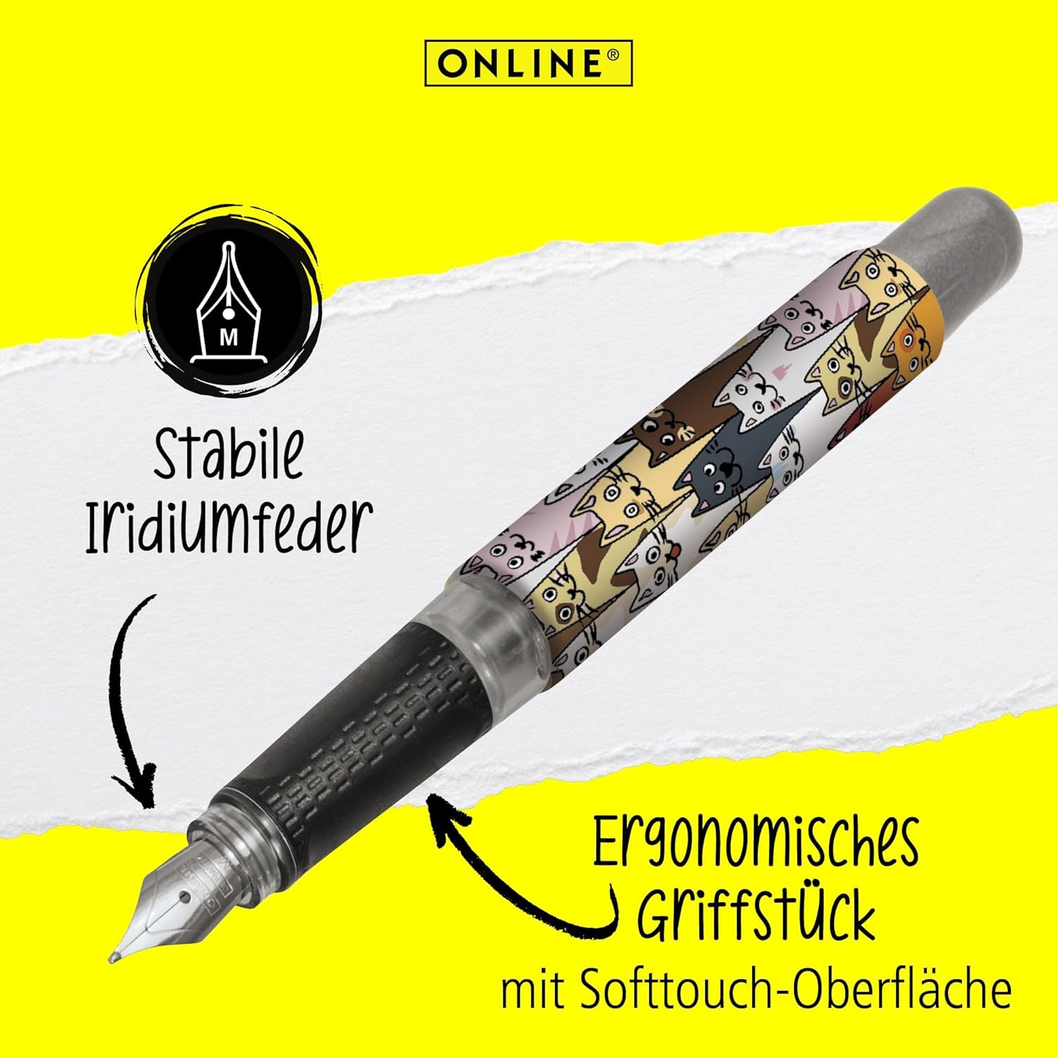 Online Penna stilografica College Gatti, penna stilografica per destrorsi, impugnatura ergonomica, pennino in iridio di alta qualità, cartucce di inchiostro standard, con cartuccia combinata blu,