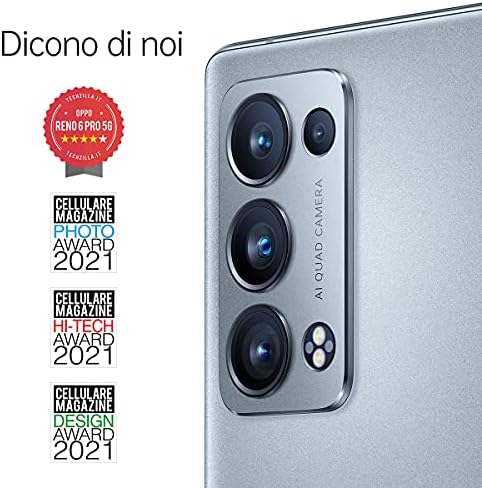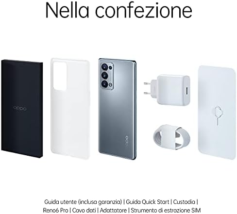 OPPO Reno6 Pro 5G, Qualcomm 870, Display 6.55‘’ FHD+ AMOLED 90Hz, Quad Camera 50+16+13+2MP, RAM 12GB Espandib. + ROM 256GB, 4500mAh, Dual Sim, con cavo dati Tipo-C [Versione Italiana], Lunar Grey