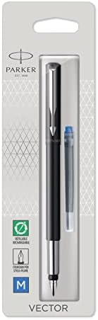 Parker Vector Penna Stilografica con Finiture Cromate, Punta Media, Inchiostro Blu, Confezione in Blister, Nero