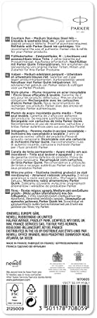 Fornita in una pratica confezione blister PARKER con una cartuccia di inchiostro blu lunga. Vogliate notare che la confezione potrebbe differire dalla foto
