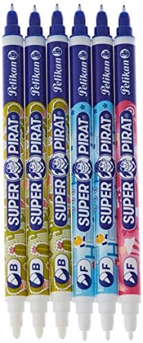 Pelikan 306696 Cancellino Inchiostro Super Pirat 850 a Doppia Punta, Correttore a Penna Punta F + B, 6 Pezzi, Kit Scuola