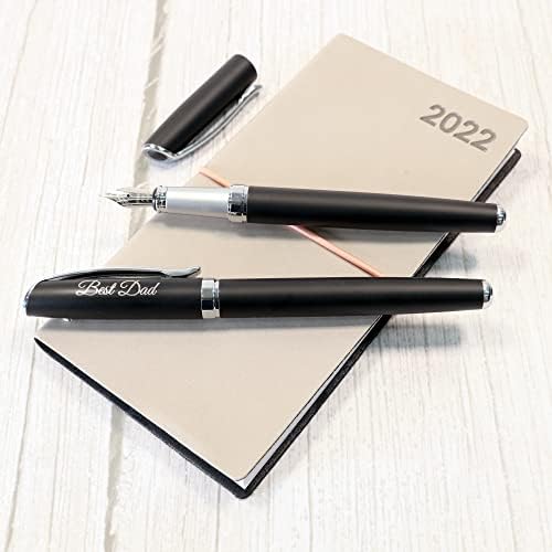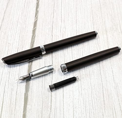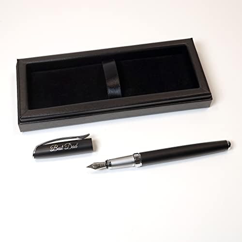 SPECIFICA: Penna stilografica in metallo nero satinato, confezione regalo nera, cartuccia d’inchiostro nero o blu inclusa; peso: 30g, lunghezza: 140mm, diametro: 11,8mm.