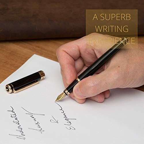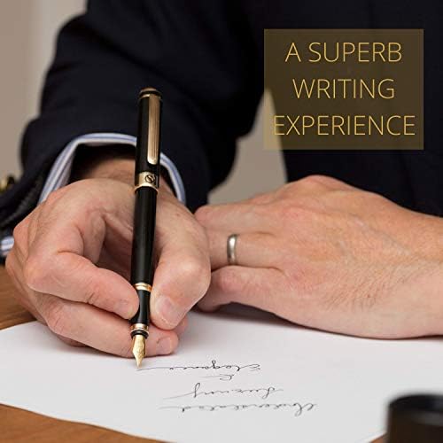★TRASCRIVETE I VOSTRI PENSIERI IN MODO SCORREVOLE – La penna viene fornita con un pennino Schmidt medio, rivestito in oro 18 carati, un convertitore Schmidt e due cartucce di ricambio (una nera e una blu). Il sistema di inchiostro tedesco Schmidt permette alla penna di scivolare senza problemi su qualsiasi tipo di carta. Perfettamente ponderata ed equilibrata per il vostro comfort di scrittura – questa è una penna di lusso progettata per chi ama scrivere ogni giorno.