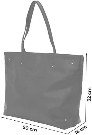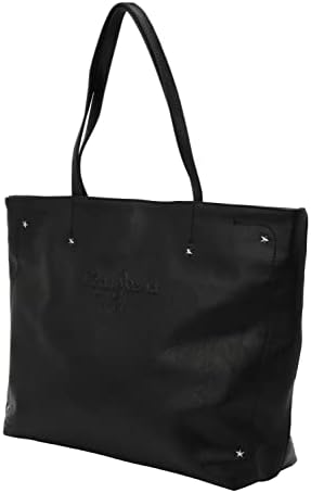 Open top TOTE BAG with snap tab closure, star studs, removable inner bag with zip closure and an inner pocket, embossed logo.