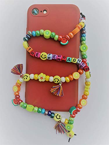 Phone strap charm perline in vetro di Boemia modello Ferragnez personalizzato con nome. Porta cellulare da polso e gioiello per il tuo telefono