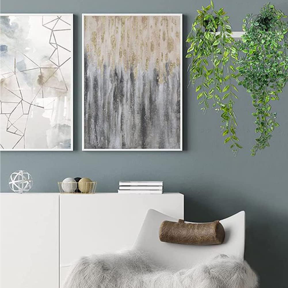 2 Piante Finte da Interno in Vaso: la confezione include 2 confezioni di vasi verdi per piante sospese, ciascuno con 5 biforcazioni, la lunghezza dei diversi rami è diversa e la lunghezza totale della vite artificiale è di 85 cm.