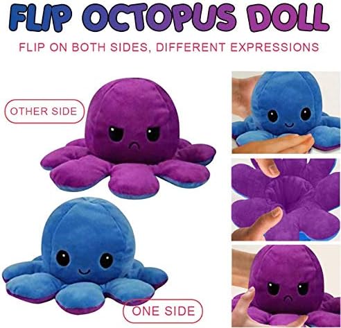 Double Sided Flip: il polpo reversibile peluche ha un esclusivo design a due toni a due lati che può essere capovolto per visualizzare diversi colori ed espressioni. È un peluche a forma di polpo a doppia faccia e una decorazione della stanza per alleviare lo stress.