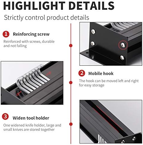 Design a gancio scorrevole: portautensili progettato con ganci scorrevoli per adattarsi alla spaziatura di pentole e padelle e spazio per i coltelli da cucina sul retro. Ottimo per appendere pentole, padelle, coperchi, guanti da forno, spatole e altre pentole.