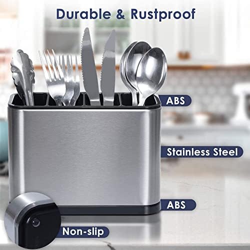 [4 Scomparti] Dimensioni perfette, può contenere tutti gli utensili da cucina comuni, come cucchiai, cucchiai, forchette, coltelli. Questa partizione separa le stoviglie e dispone di fori di ventilazione per un’asciugatura rapida.
