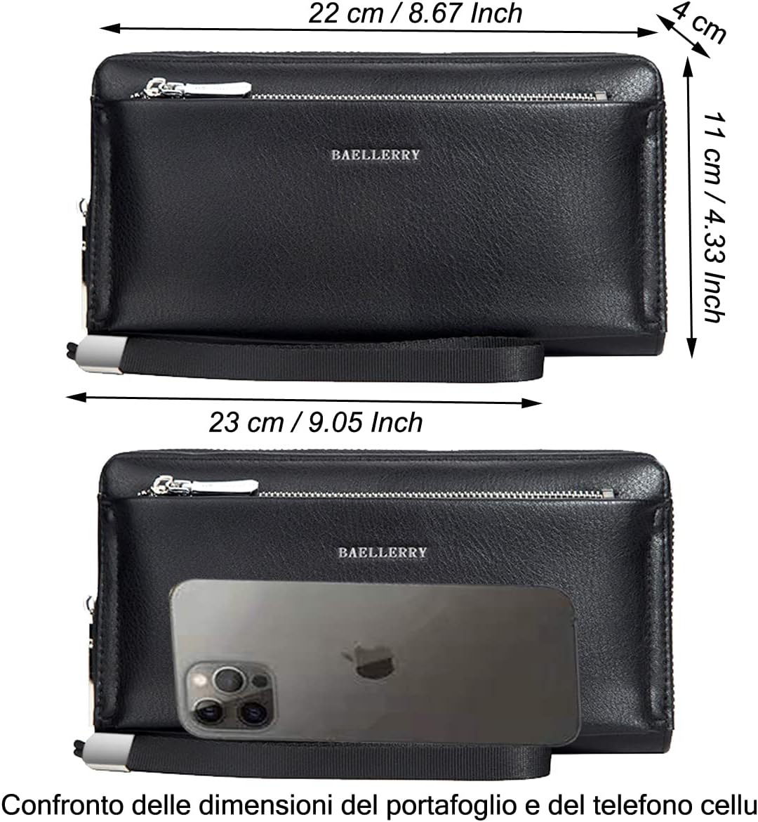 ❤ 【Portafoglio da uomo di grande capacità】: misura 22*11*4 cm, il portafoglio lungo da uomo può contenere un gran numero di carte, contanti, telefoni cellulari e altri oggetti personali. La borsa con cerniera del portafoglio adotta un design simile a un organo per aumentare la capacità della borsa.
