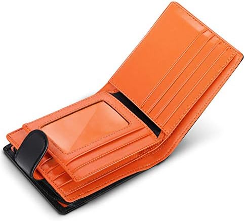 Il portafoglio da uomo è realizzato in morbida pelle di mucca genuina,si sente confortevole,morbido e resistente.Sobrio nero all’esterno,ma l’interno è un funky caldo color arancione,perfetto per un gentleman raffinato all’esterno ma divertente dentro!