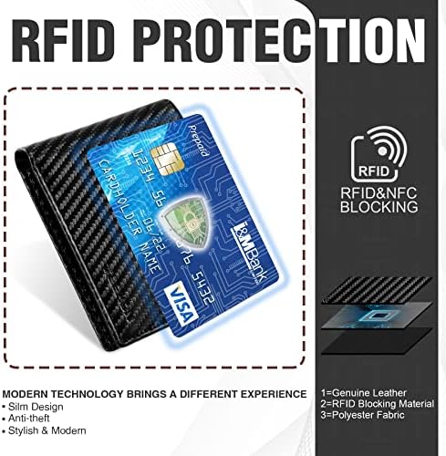 Portafoglio uomo, pelle in fibra di carbonio con blocco RFID, portafoglio bifold, portamonete, 7 scomparti per carte di credito, 1 finestra ID, 2 scomparti per banconote,Nero… (A-NEW)