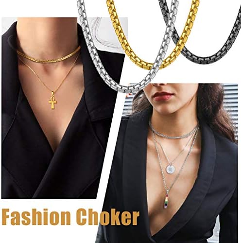 Collana uomo a catena piatta, larghezza 4 / 6 mm, lunghezza 46 / 51 / 55 / 61 / 66 / 71 / 76 cm.Design speciale: in stile hip hop e Punk, gioiello alla moda, super cool.Un regalo perfetto per Lei stesso per Natale!