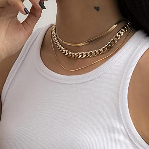 Prosy Punk Layered Snake Choker Collane Oro Spesso Chunky Twist Circle Collana Catena Gioielli Regolabili per Donne e Ragazze