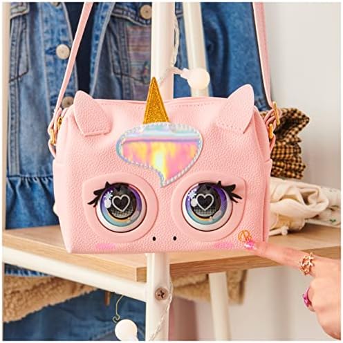 Dotata di corno glitterato, materiale verniciato iridescente, pelle rosa, tracolla regolabile e dettagli in metallo, Purse Pet Glamicorn è il tuo accessorio di moda e il tuo animaletto di compagnia.