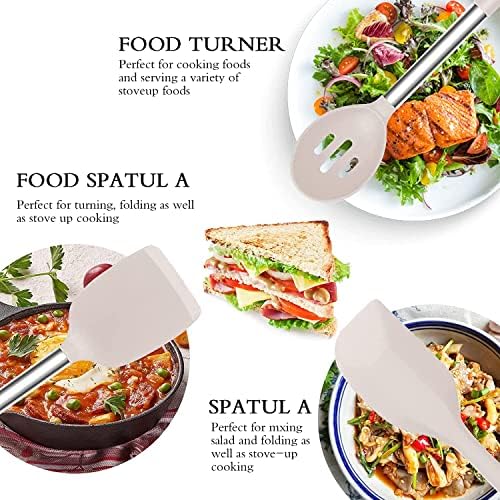 Facile da pulire e conservare: i nostri utensili da cucina in silicone non sono appiccicosi e facili da pulire, basta pulire con acqua tiepida o mettere in lavastoviglie. Ogni maniglia in acciaio inossidabile ha un comodo foro per appendere facilmente e facilmente asciugare. Il supporto coordinato contiene comodamente tutti gli utensili da cucina per risparmiare spazio sul bancone e mantenere le cose in ordine. .