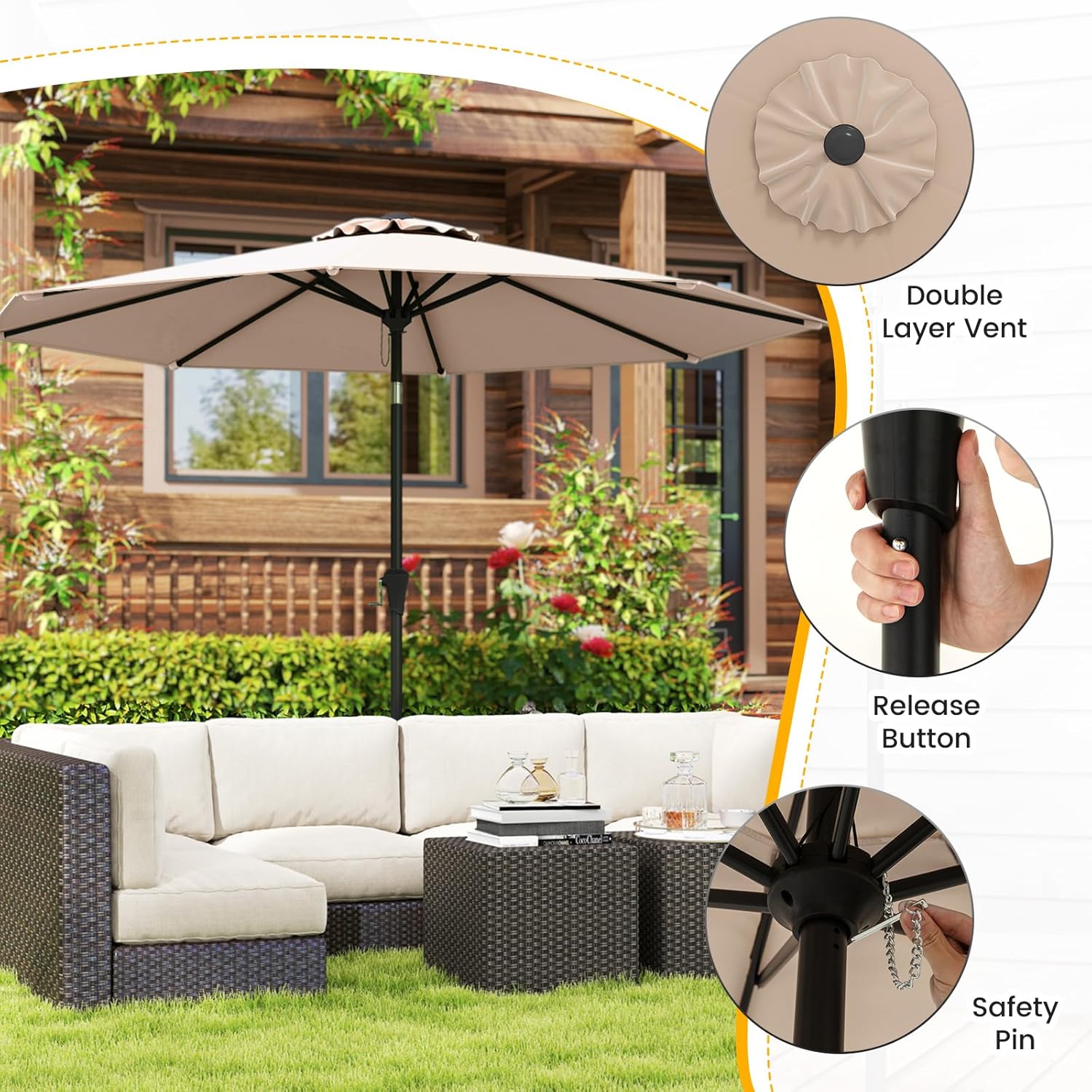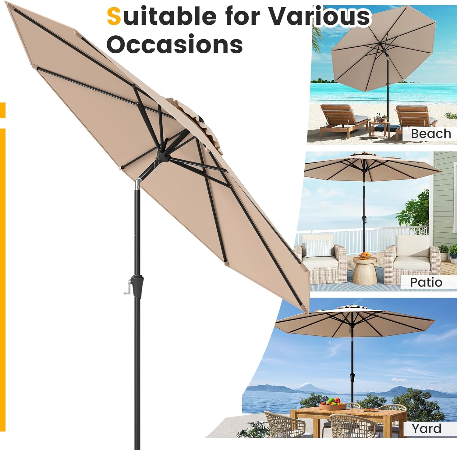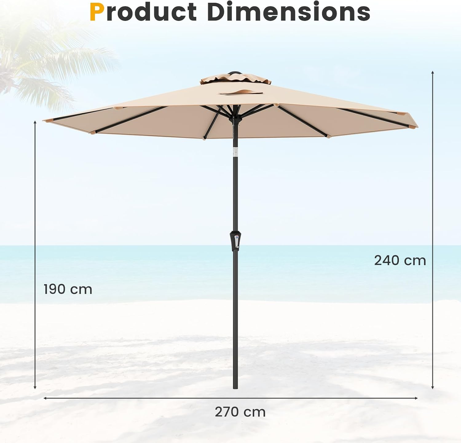 RELAX4LIFE Ombrellone da Giardino 270 cm, Ombrellone da Esterno con Manovella, Inclinazione Regolabile, Tettuccio Ventilato, Ombrellone Parasole per Griadino, Terrazzo, Spiaggia