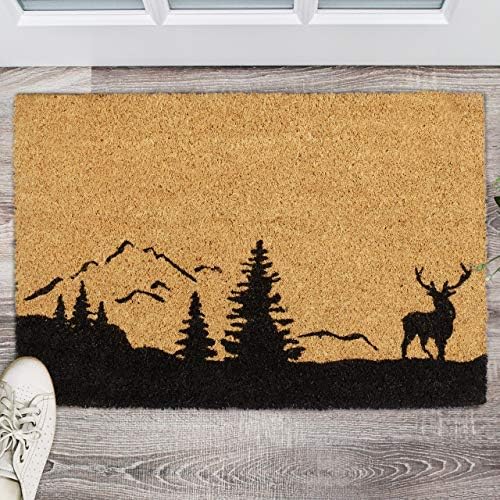 Relaxdays Zerbino in Fibra di Cocco, Tappetino con Cervo e Alberi, Stuoino per Porta di Casa, 60x 40 cm, Legno Naturale, Fibre, PVC, 1 pz