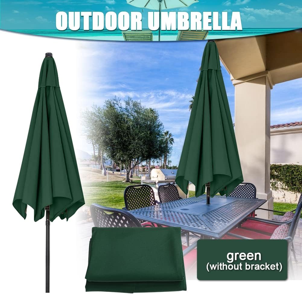 Questa copertura per ombrellone è realizzata in tessuto di poliestere di alta qualità, che ha un ottimo effetto ombreggiante, e la solidità del colore raggiunge lo standard europeo 5 o 4, superiore alla maggior parte dei prodotti sul mercato, e non è facile da sbiadire. Facile da pulire e da assemblare, non richiede attrezzi. Adatto per telai di ombrelloni in legno, acciaio e alluminio.