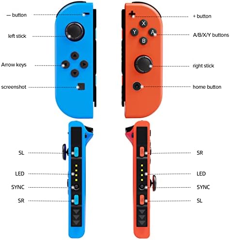 Compatibile con Switch Console: questo è un controller Switch di terze parti, perfettamente compatibile con Switch/OLED/Lite. Due controller switch Joy-C possono essere utilizzati indipendentemente in ciascuna mano o insieme come un controller di gioco quando sono collegati all’host o all’impugnatura. Questo controller switch wireless ha le stesse funzioni dell’originale, è un sostituto ideale.