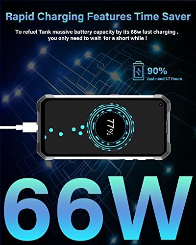 Ricarica rapida: dotato di ricarica rapida da 66 W, in circa 2,5 ore questo telefono Unihertz Tank ad alta potenza verrà ricaricato di circa il 90%.