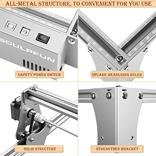 🔥【La macchina per incisioni in metallo lo rende più comodo per voi】 la nostra macchina per incisione laser S6 Pro utilizza un design completamente in metallo, in modo che la nostra macchina laser da scrivania sia molto forte, stabile e durevole. Non è necessario sopportare il problema della rottura dell’acrilico. I nostri quattro piedini e sul corpo sono dotati di fori di fissaggio riservati che servono per il fissaggio della macchina e del cavo dati per garantire la vostra sicurezza.