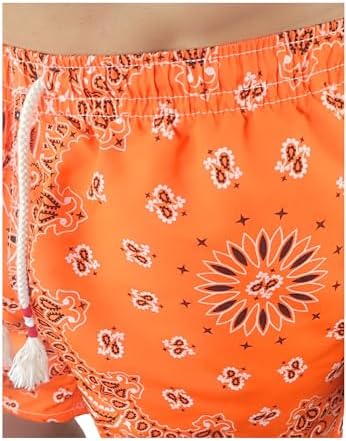 Costume corto della firma italiana MC2 SAINT BARTH realizzato con il 50% di materiali riciclati. Design a taglio dritto, tasca posteriore, coulisse regolabile e dettaglio stampato Bandana su tutto il capo.
