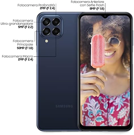 Samsung Galaxy M33 5G Smartphone Android Display 6.6’’¹ FHD+ TFT LCD Batteria 5.000 mAh Quattro Fotocamere, Principale 50 MP, RAM 6GB Memoria Interna 128 GB, Blue [Versione italiana] Esclusiva Amazon