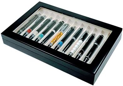 Scatola Portapenne con vetrina. Espositore in legno per 12 penne nere. il marchio segue standard più elevati per la soddisfazione del cliente.