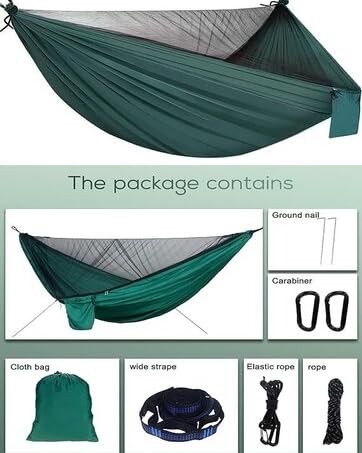 【Comfortable and Durable】Lightweight double camping hammock made of high quality 210T parachute nylon materials, the same type used by paratroopers. Can withstand up to 300 kg. The touching hammock is a breathable and smooth material. The size of the hammock is 290x140cm, it is enough for people who are 1.8m or 2m tall.