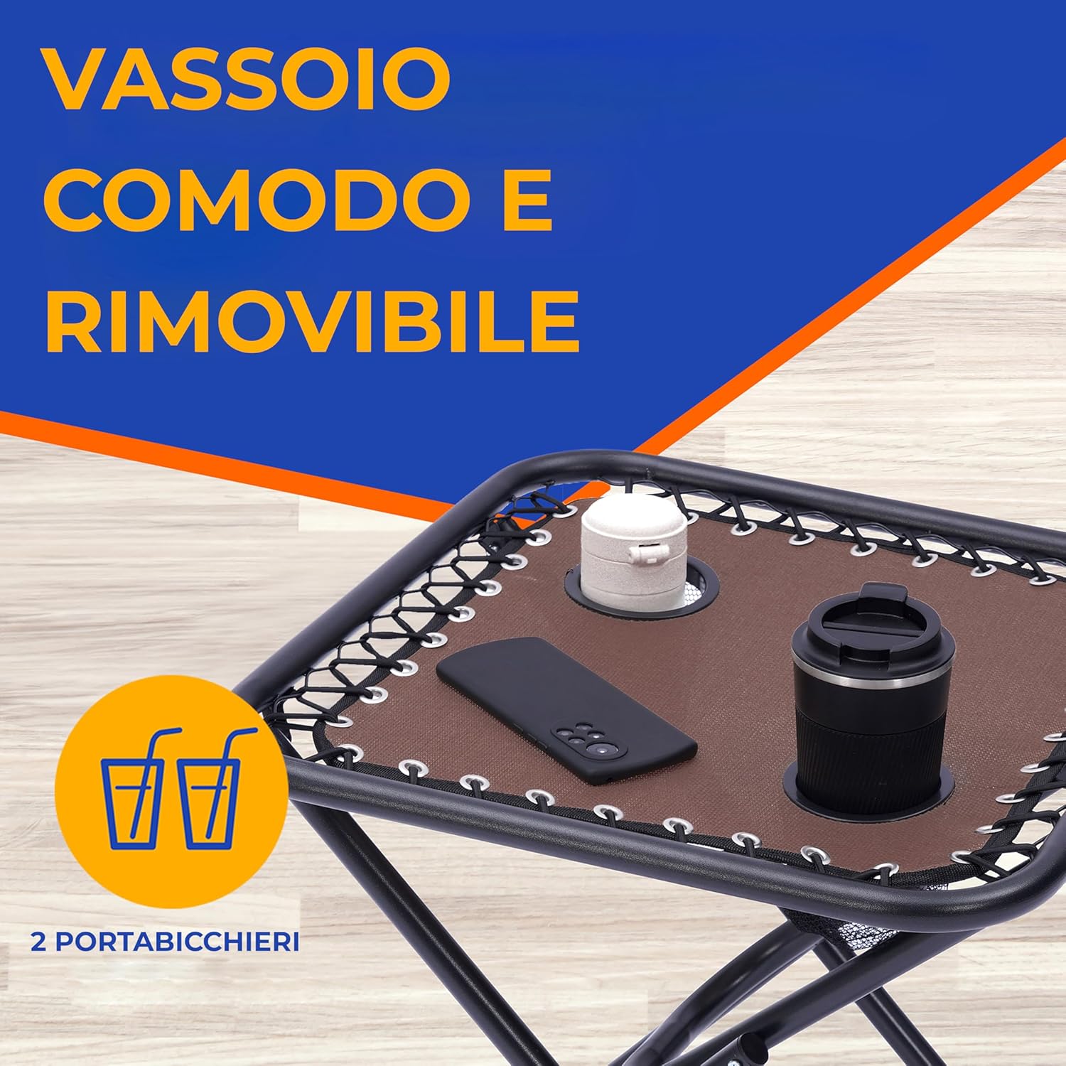 ✅Tavolino laterale: Completa il tuo relax con il tavolino laterale, dotato di 2 portabicchieri, ideale per tenere a portata di mano bevande, telefono, tablet e altri oggetti essenziali mentre usi la sedia relax.