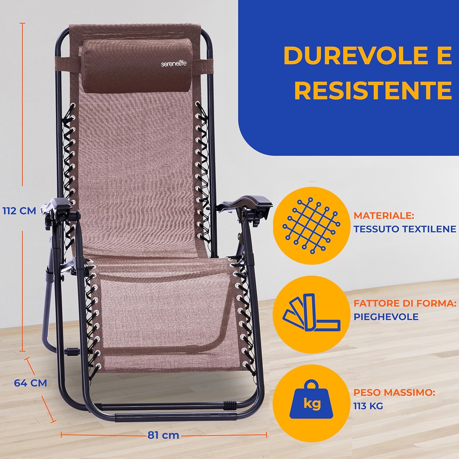 SereneLife Set di 2 Sedie Reclinabili da Giardino, Sdraio Regolabili con Tavolino Laterale, Portabicchieri e Cuscini Rimovibili, Sedie Pieghevoli da Campeggio per Esterni, Patio, Giardino e Spiaggia