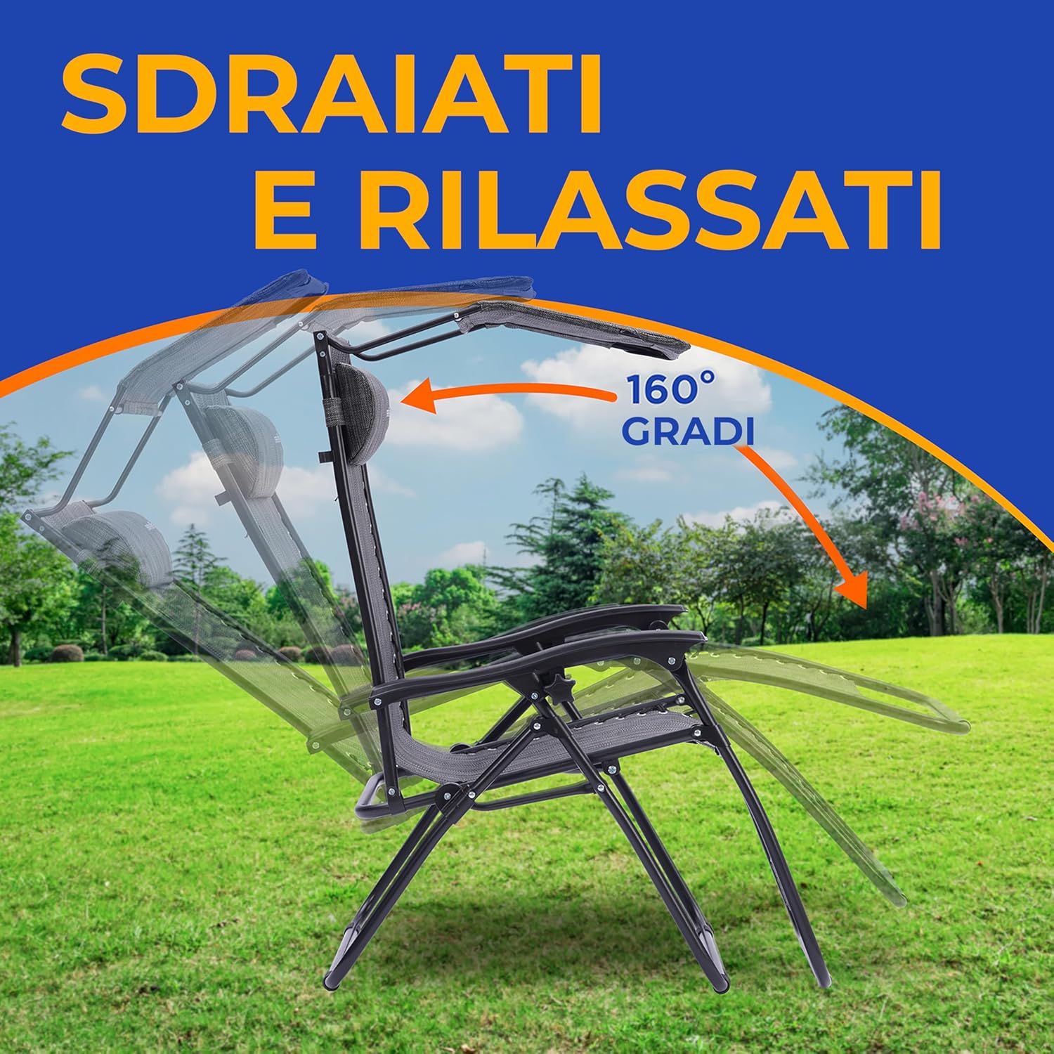 RELAX IN STYLE – Enjoy ultimate relaxation with our 2 outdoor garden sun loungers, equipped with integrated sun visor to protect you from the sun. Made of breathable fabric with removable headrests, they provide maximum comfort at poolside, garden, beach, backyard or any other outdoor space.