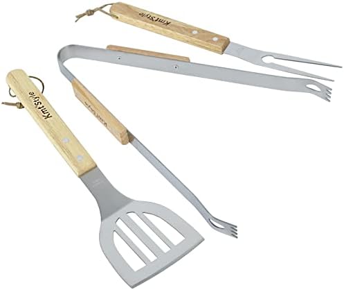 Utile: Questo kit contiene pochi utensili essenziali per cucinare sulla griglia da barbecue! La spatola è perfetta per raccogliere e voltare gli hamburger, le pinze ti permettono di raccogliere e girare spiedini e verdura con precisione; il forchettone ti permette di infilzare grandi pezzi di carne per testarne il grado di cottura e muoverli con facilità