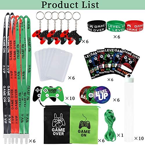Fornitura VIP Pass: pass VIP con gamepad e icona del videogioco stampato nella parte anteriore, pieno di atmosfera a tema party, e puoi scrivere informazioni personali nella parte posteriore.