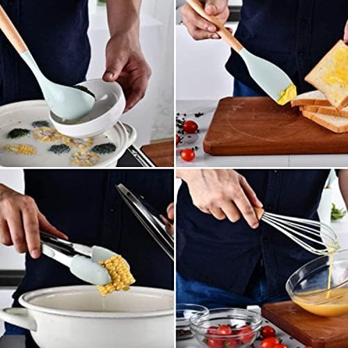 【Durevole e Resistente al Calore】Il legno naturale è robusto, igienico e ha un ottimo isolamento termico per evitare che le tue mani si scottino.Tutte le parti in silicone sono resistenti al calore fino a 446 ℉ (230 ℃), il che allunga la longevità di entrambi i siliconi utensili da cucina e pentole. Il set da cucina in silicone riduce anche il rumore durante la cottura.