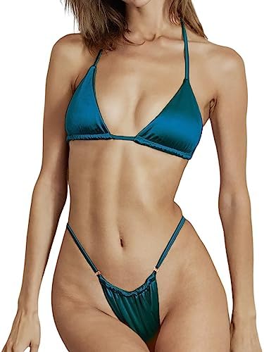 Silkglory Bikini Donna Mare,Bikini Triangolo Donna Costume Donna Due Pezzi Perizoma Brasiliana Stringa Sexy Solido Glitter Push Up Costume Donna Bikini
