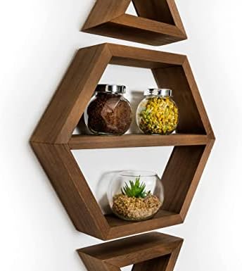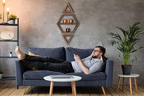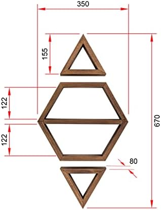 Sei stufo di decorazione casa noiosa? Stai cercando decorazioni particolari? Abbellisci la tua parete con le mensole da muro design. Le mensole di design stravagante stanno bene sia all’arredamento moderno che a quello rustico. Dimensioni mensole da parete ca. 70x35x8 cm: Esagono: 35x30x8 cm. Triangoli: 18x18x8 cm ciascuno. Spessore del legno: circa 1,90 cm. Mensole in legno massello e naturale: Il legno Paulownia è molto leggero e robusto. È ideale da appendere al muro grazie al suo peso leggero. La mensola può essere appesa in diversi modi. Si possono utilizzare i chiodi forniti, chiodi semplici o tasselli con delle viti. Che cosa stai aspettando? Concediti un piccolo pezzo di unicità!